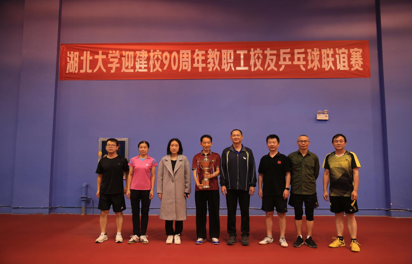 10月10日上午,迎建校90周年教职工校友乒乓球联谊赛圆满结束,来自全校各单位教职工和校友等22个代表队近240名队员进行了比赛。我院与来自深圳、孝感、武汉等地的校友组成联队参加了此次比赛,并荣获冠军。(审核:郑全新)