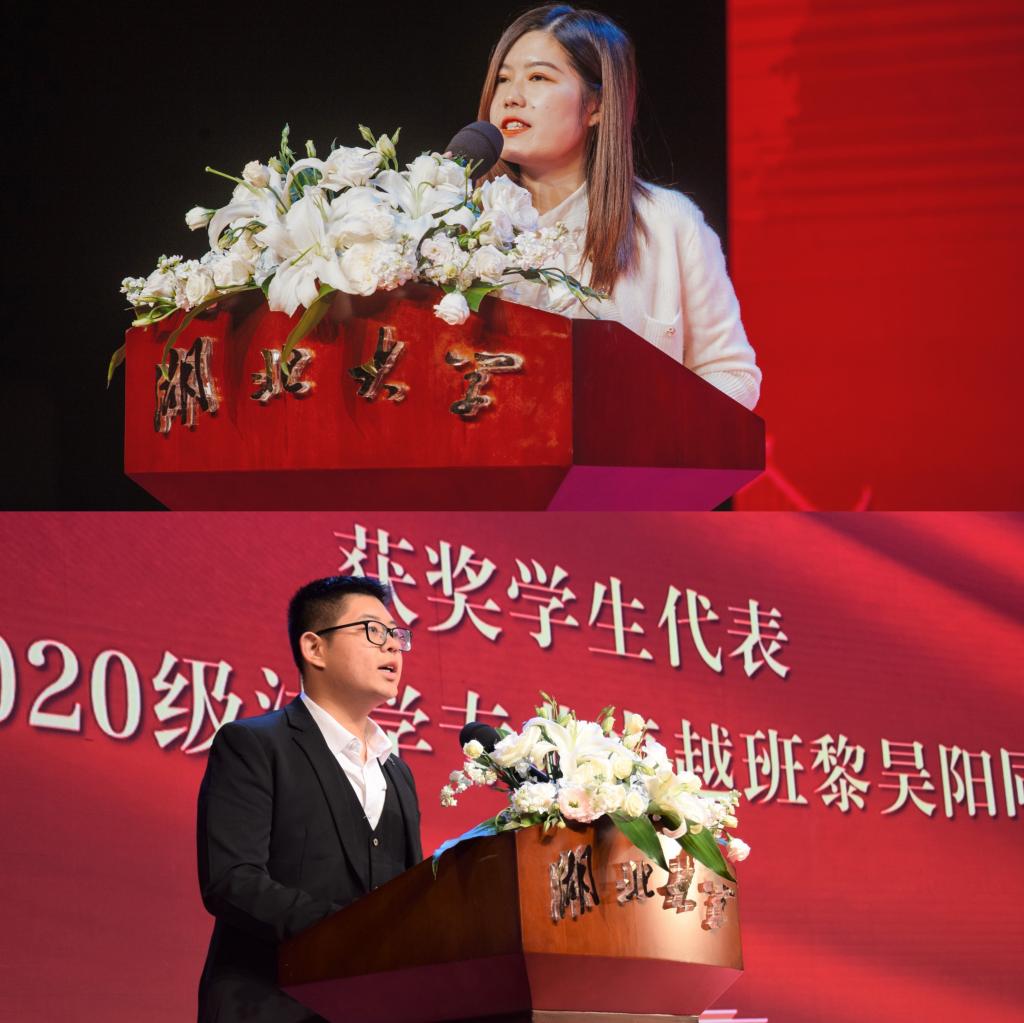 公共管理学院获奖教师代表华汛子老师表示,将不忘初心,把教师这一职业作为安身立命之本和实现人生价值的桥梁,做好学生成长路上的引路人和守护者。bevictor1946获奖学生代表黎昊阳感谢学校和师长在成长道路上给予的帮助,表示要立志做一名有理想有担当的时代青年,勇担使命砥砺前行,尽己所能回报学校和社会。