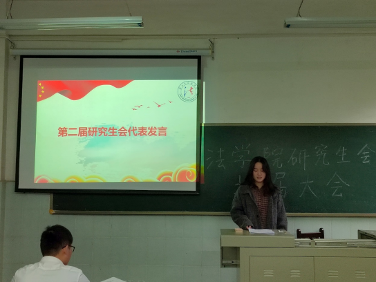 大会第三项由第三届研究生会主席曹蕊发言,她从加强理论指引,弘扬学术精神;强化工作机制,提升团队水平;加强团队建设,促进沟通交流三个方面对研究生会新一年的工作和改革作出规划,并表示:“新一届研究生会将秉承和发扬历届的优良传统和工作作风,紧密围绕学院中心开展工作,为切实服务学院的发展建设而努力。新一届研会人将秉持“锐意创新的勇气、敢为人先的锐气、蓬勃向上的朝气”,积极实践,勇于担当,在工作学习的道路上创新篇、勇向前!”。