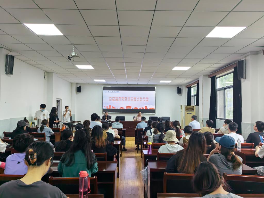 会后,各来访人员还分别为我院学生代表进行了法院公务员考试宣讲和就业指导讲座。蔡强播放了珠海的城市宣传片,让学生代表感受珠海的城市风貌,同时着重讲述了珠海市法院系统的创新发展情况以及当地公务员的工作生活情况。谢明骥介绍了香洲区人文风貌、法院工作成绩和创新举措,如智能化办案系统等基本情况,指导学生进行公务员招录考试准备。张杰结合自身经历为学生提供了升学就业和考公选岗指导。在互动环节,我院学生分别就考研与就业的选择、实习工作情况和司法干警招录考试等方面提出问题,与会来宾一一进行了详实有用的解答,学生代表深受启发。