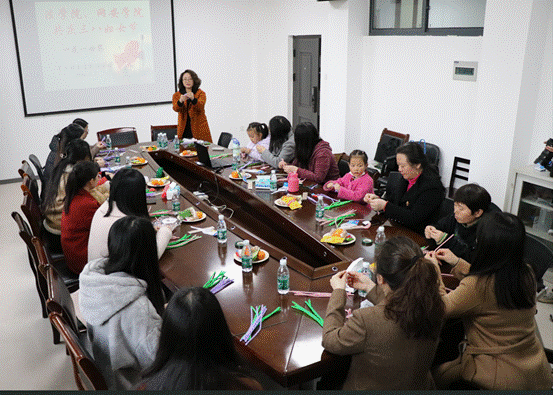 女老师们共聚一堂,专心致志学做手工花,在工作之余收获愉悦、放松心情。老师们互相帮助,交流制作细节,彩色的扭棒经过对折、相交、缠绕…在老师们的手指翻飞间逐渐变成一朵朵枝叶舒展、花瓣饱满的郁金香。春风如至室内,花朵鲜妍,欢声笑语,其乐融融,老师们留下如花笑颜,带回美丽心情。