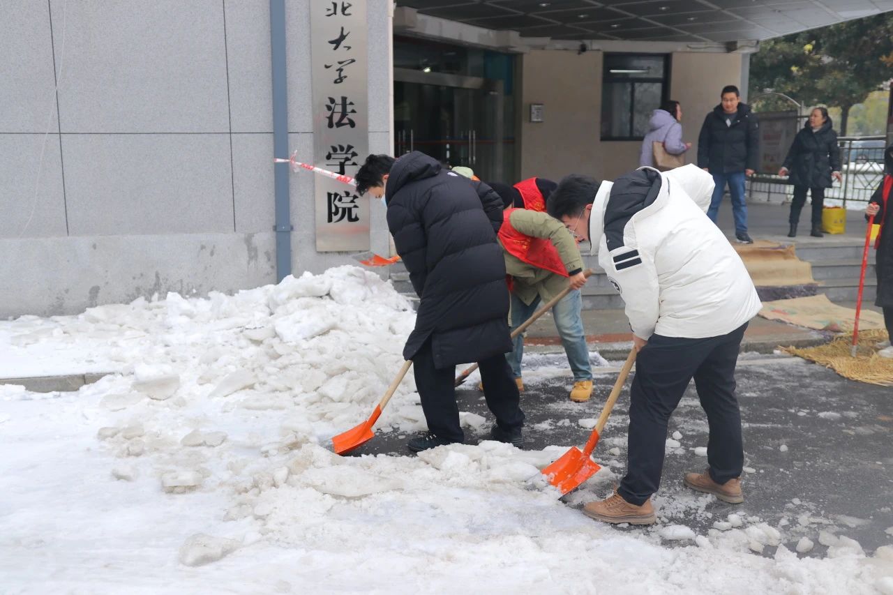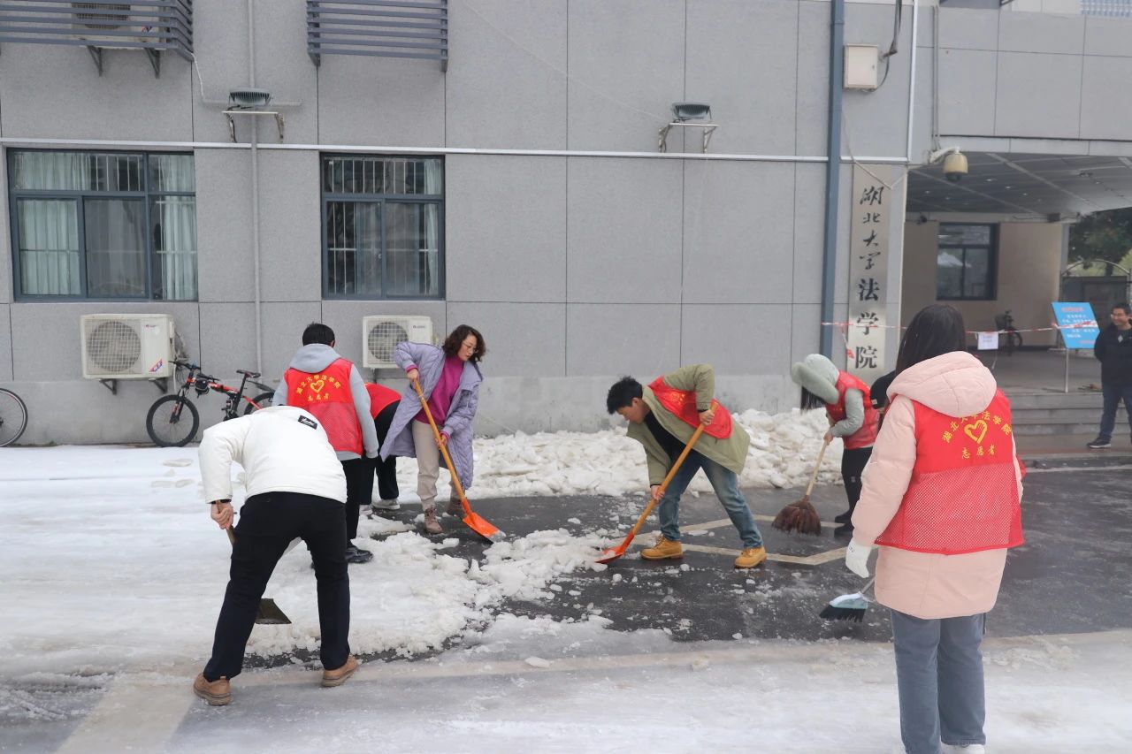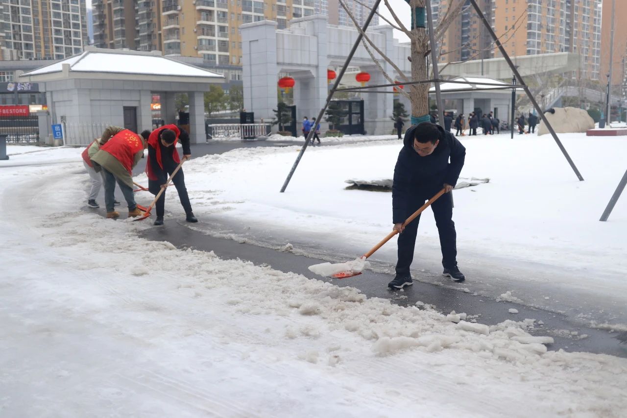 风雨送春归,飞雪迎春到。被冰雪夹霰洗礼后的伟德国际1946bv银装素裹,校园道路上积雪深厚。随着新学期的来临,为确保校园安全有序,让师生们顺利返校,bevictor伟德国际1946党委副书记张梦婵、教师蔡大顺、张颖、袁子轩、肖普焮、团委书记郭童以及各位学生志愿者们积极地参与了此次扫冰除雪的活动。