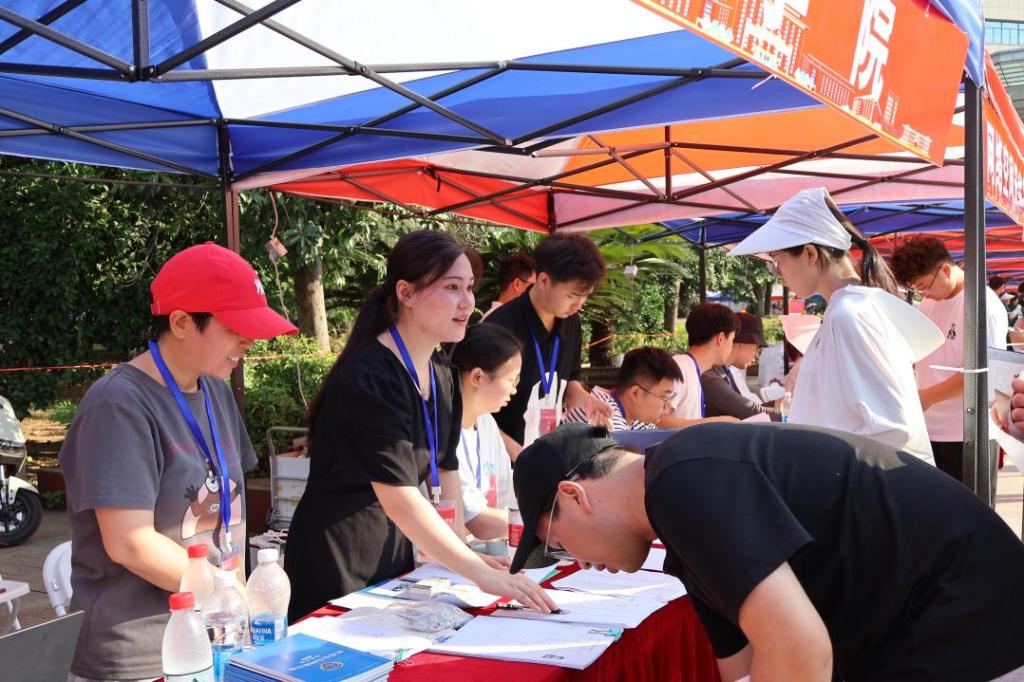 在新生接待工作中,学院准备充分、服务周到,及时提醒新生入学报道相关事宜及注意事项,并分别在求索广场学院报到处、琴园小区学生住宿点及五区学生住宿点安排迎新志愿者接待新生。