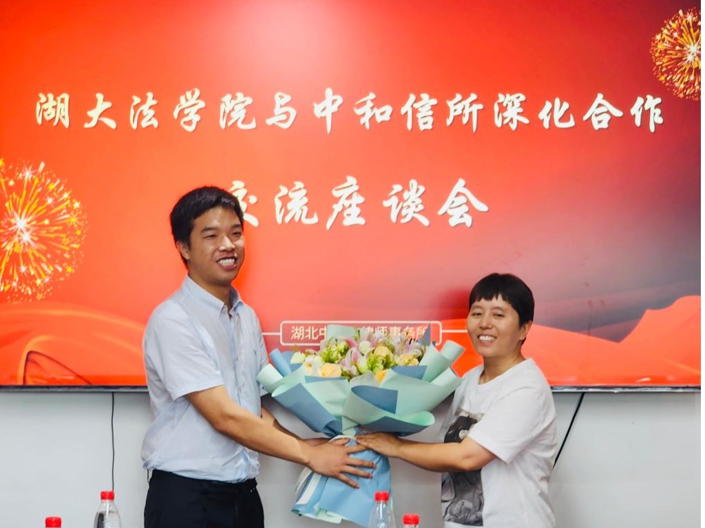随后,邹爱华院长一行走访了湖北中和信律师事务所。双方就法科生人才培养机制与完善、实习生律所实践和发展状况、职业能力的塑造与院所深化合作等内容在座谈会上进行了深入交流。会议由湖大bevictor1946校友律师、中和信所副主任徐小明主持。座谈会上,李文主任对邹爱华院长一行的到来表示热烈欢迎,并表示中和信所已经与bevictor伟德国际1946开展多项交流活动并取得丰硕成果,“湖大bevictor1946的“好种子”已经在中和信所开出了绚丽之花”,感谢bevictor伟德国际1946为中和信所输送优秀法律人才,希望中和信所与bevictor伟德国际1946能够开展更多交流活动、院所合作更上一层楼。院长邹爱华对中和信所在湖大bevictor1946本科生和研究生培养上表示感谢,对我院毕业生在中和信所的成长和发展表示倍感欣慰,希望双方在既有合作的良好基础上能够进一步拓宽合作领域、深化合作维度,为湖大bevictor1946研究生工作站建设助力,共同打造在全省具有影响力的法学人才培养基地。副院长江岚、研究生秘书张素华老师、中和信一级合伙人雷刚、马力、尹群峰,伟德国际1946bv法律顾问林琳等律师以及我院实习生余文杰在会上分别作出发言。最后,张鑫副主任做总结发言,他强调校所合作应呈现多面性,使双方合作保持高水平发展。