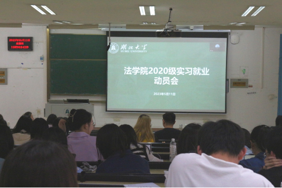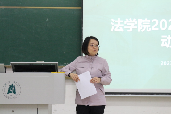 徐梦醒做2020级的实习动员。她指出,专业实习是学生培养的必修环节,分为学院组织的集中实习和自主联系的分散实习。她强调,实习要从事与法律专业相关的工作,在进行了为期十周的实习经历后,要填好专业实习手册,做到有图有真相。
