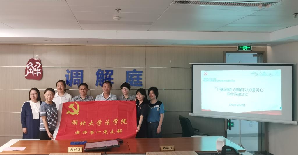6月22日下午,根据伟德国际1946bv关于开展党员干部 “下基层 察民情 解民忧 暖民心”实践活动方案要求和动员会精神,为积极探索党建工作新模式,切实增强党建活动效果,营造良好的共建环境,我院教师第一党支部与武汉市法学会社会纠纷多元化解研究会(“调解网”)就此开展联合主题党日活动。