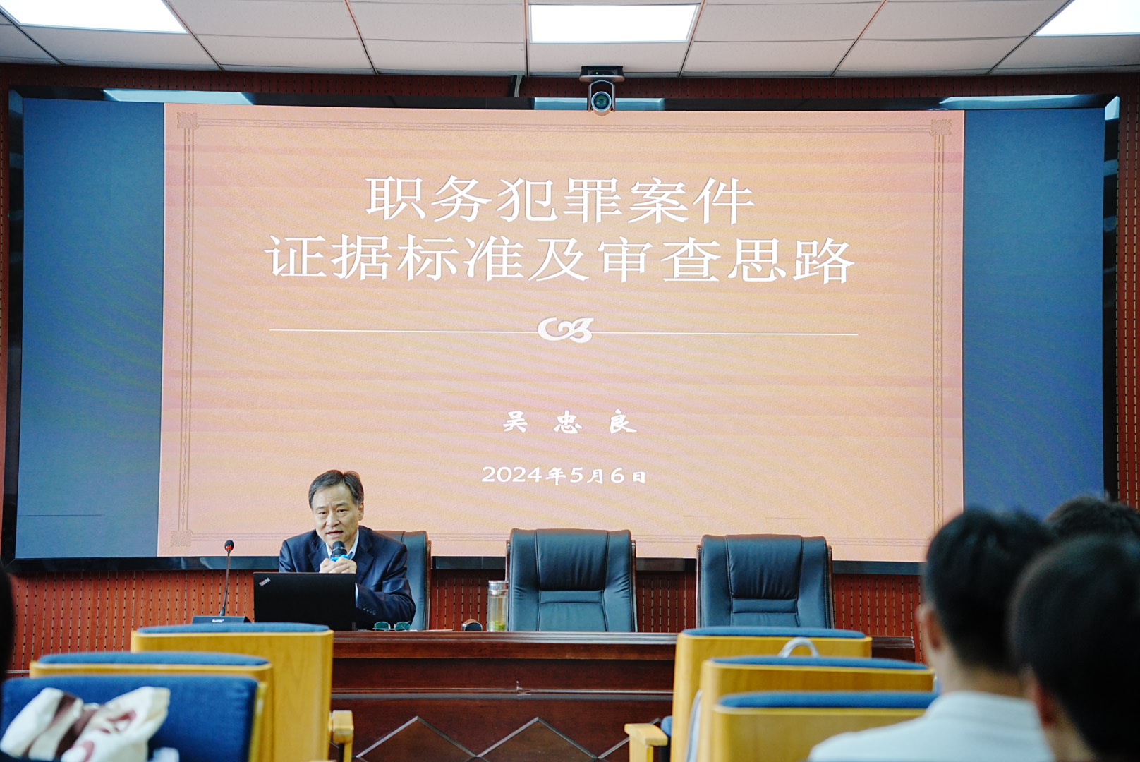 2024年5月6日上午,刑法学专题研究课程任课老师江岚特邀一级高级检察官吴忠良老师在bevictor1946模拟法庭为bevictor19462023级硕士研究生作“职务犯罪案件证据标准及审查思路”专题讲座,本次讲座由bevictor伟德国际1946副院长江岚主持。