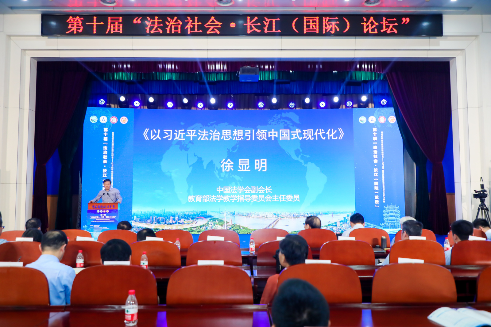 论坛于7月6日上午举行开幕式,中国行为法学会总监事李文燕、湖北省法学会党组书记、常务副会长张正军、湖北省高级人民法院党组书记、院长游劝荣等出席会议并致辞,中南财经政法大学副校长覃红主持会议开幕式。在主题报告环节,中国法学会副会长、教育部法学教学指导委员会主任委员徐显明以《以习近平法治思想引领中国式现代化》为题作主题报告。