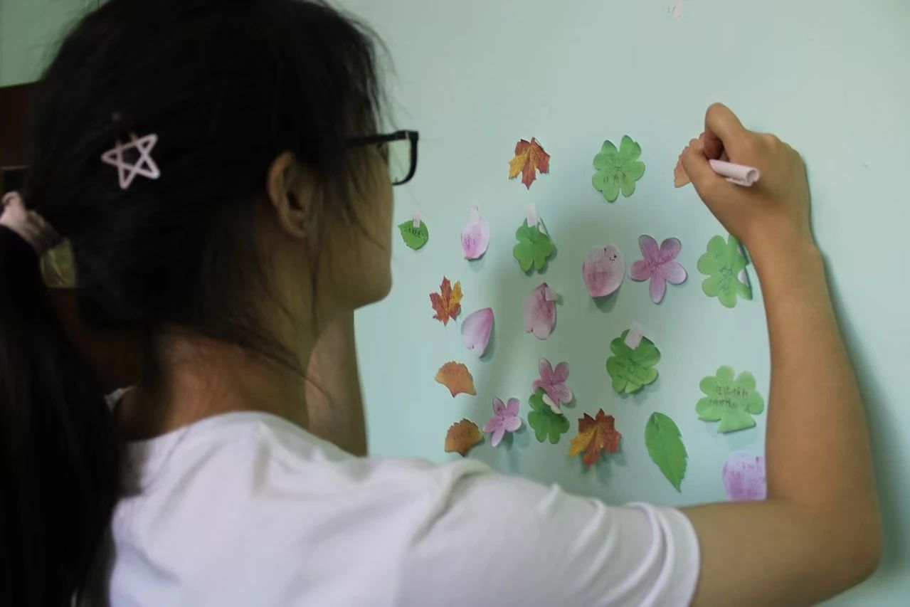 每个人都是参与者,也是倾听者,通过一幅幅色彩图案、一片片小小的“叶子”,同学们学会了如何表达自己,如何倾听他人,如何在交流中找到解决问题的答案。在增进学生之间的了解与信任的同时,营造了关爱与支持的校园氛围,增强了同学的凝聚力和合作精神!(审稿:张梦婵)