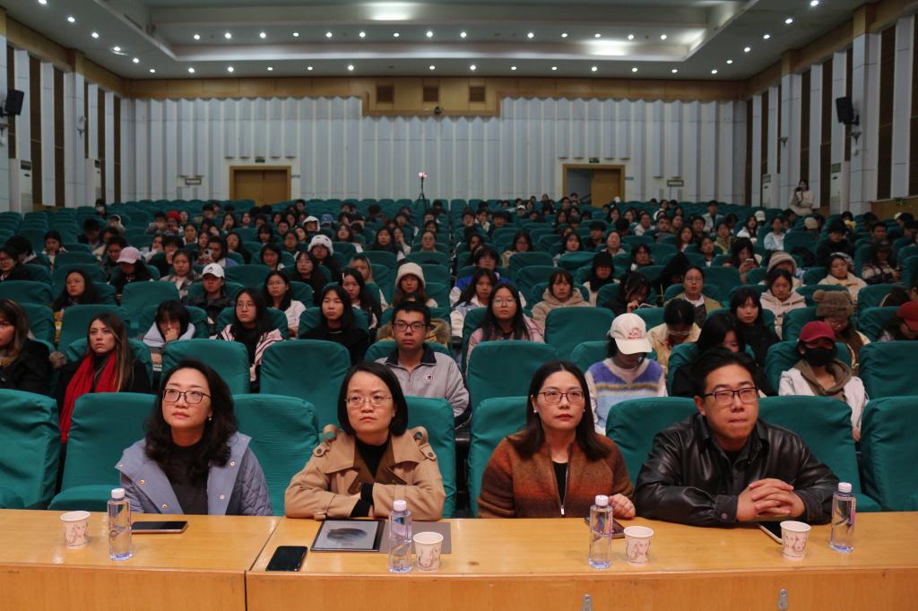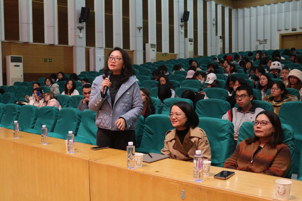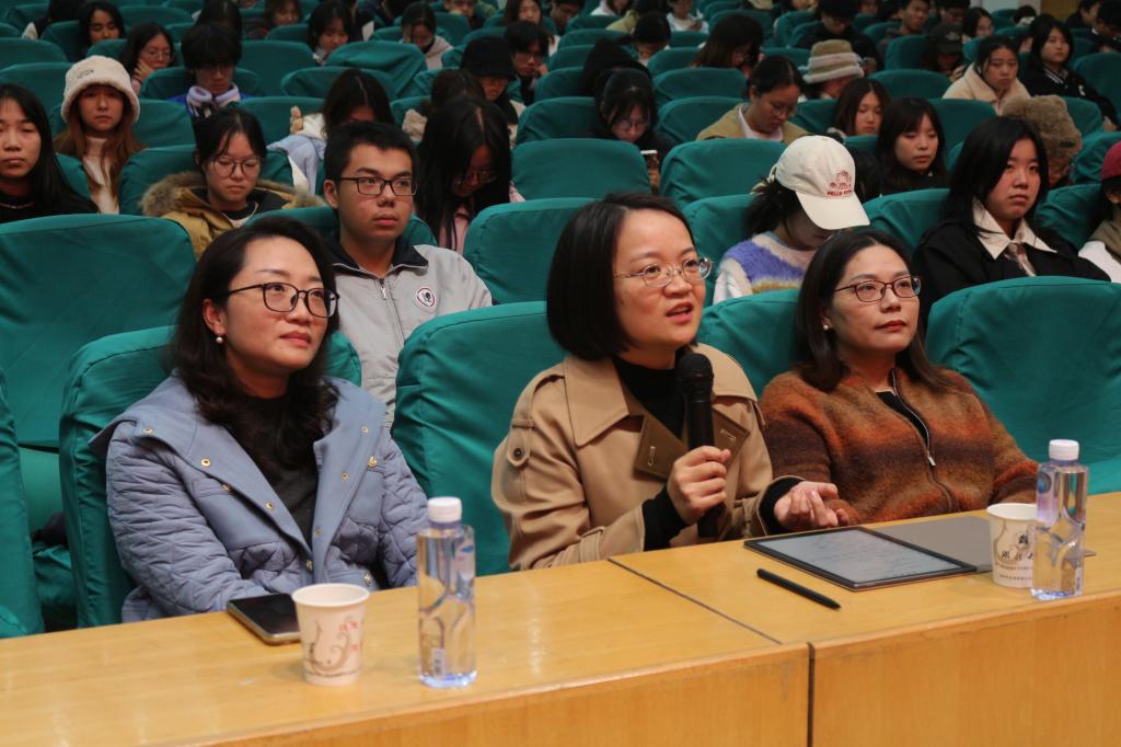 徐梦醒老师作点评,首先,她对各专业同学们的到来表示热烈欢迎;其次,她高度赞扬了此次模拟法庭辩论环节双方在辩论实力上的展示;最后,建议辩论环节还可以对精神损害赔偿方面进行重点论证。