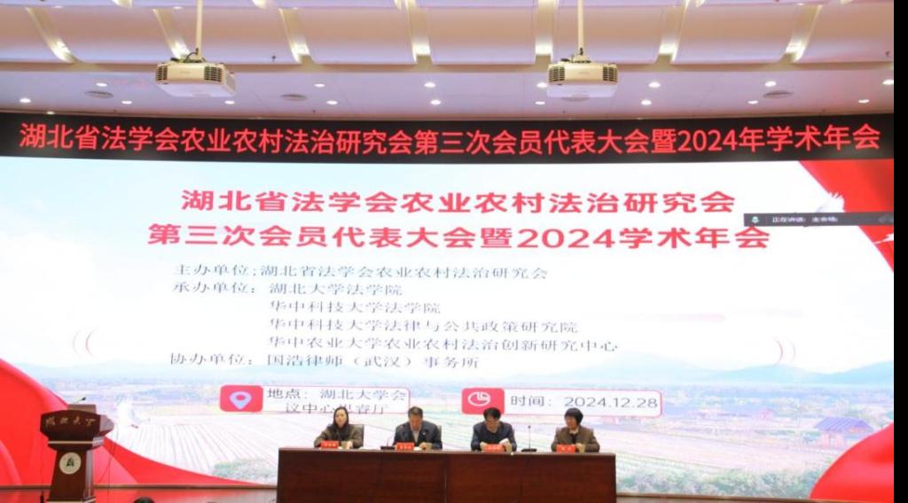 2024年12月28日,湖北省法学会农业农村法治研究会第三次会员代表大会暨2024年学术年会在伟德国际1946bv顺利召开。本次大会以“中国式现代化与农业强国”为主题,由湖北省法学会农业农村法治研究会主办,bevictor伟德国际1946、华中科技大学bevictor1946、华中科技大学法律与公共政策研究院以及华中农业大学农业农村法治创新研究中心共同承办,国浩律师(武汉)事务所协办。来自湖北省各大高校及律师事务所的专家学者齐聚一堂,共同探讨农业农村法治建设的最新进展和未来方向。