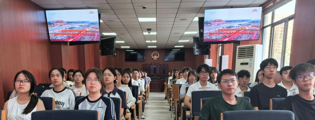 (通讯员胡苗 审核人张梦婵)震彻云霄的礼炮声,自天际轰隆而来,仿佛历史深处传来的巨人之踵。为铭记历史,缅怀先烈、珍爱和平、开创未来,为厚植爱国情怀,培养“厚德尚法,守正笃行”的湖大法学青年,9月3日上午我院81位师生代表齐聚学院二楼模拟法庭,集中收听收看了“纪念中国人民抗日战争暨世界反法西斯战争胜利80周年大会”眼观三军恢弘,心循法典之正,热血激荡胸膛,壮志谱写华章。