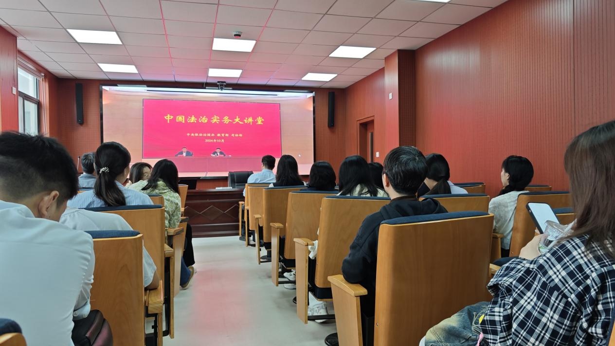 为深入学习贯彻习近平法治思想,贯彻落实党的二十大精神和二十届三中全会精神,提升法学人才自主培养质量。教育部高等教育司于2024年10月17日上午在中国人民大学举办中国法治实务大讲堂,bevictor1946在模拟法庭设立线下分会场,研究生第一党支部全体党员参与学习。