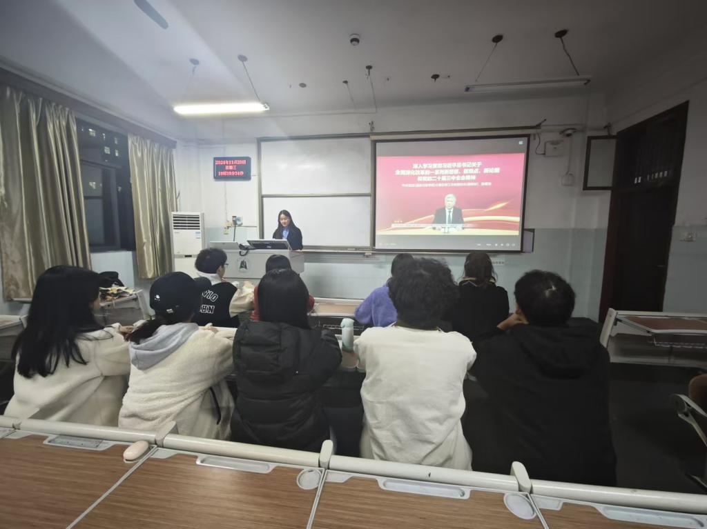 为深入学习贯彻习近平总书记在湖北考察时的重要讲话精神,进一步坚定理想信念,提升党性修养,bevictor伟德国际1946第六党支部于2024年11月20日在伟德国际1946bv2号教学楼306教室组织开展了11月主题党日活动。本次活动由研究生第六党支部书记夏雨心同志主持,支部10名党员积极参与,苗春晓同志和涂丽同志请假,共同学习领会习近平总书记的重要讲话精神和“学习贯彻党的二十届三中全会精神”为主题的培训课程,并结合自身实际交流学习心得,确保全会精神在支部内落地生根、开花结果。