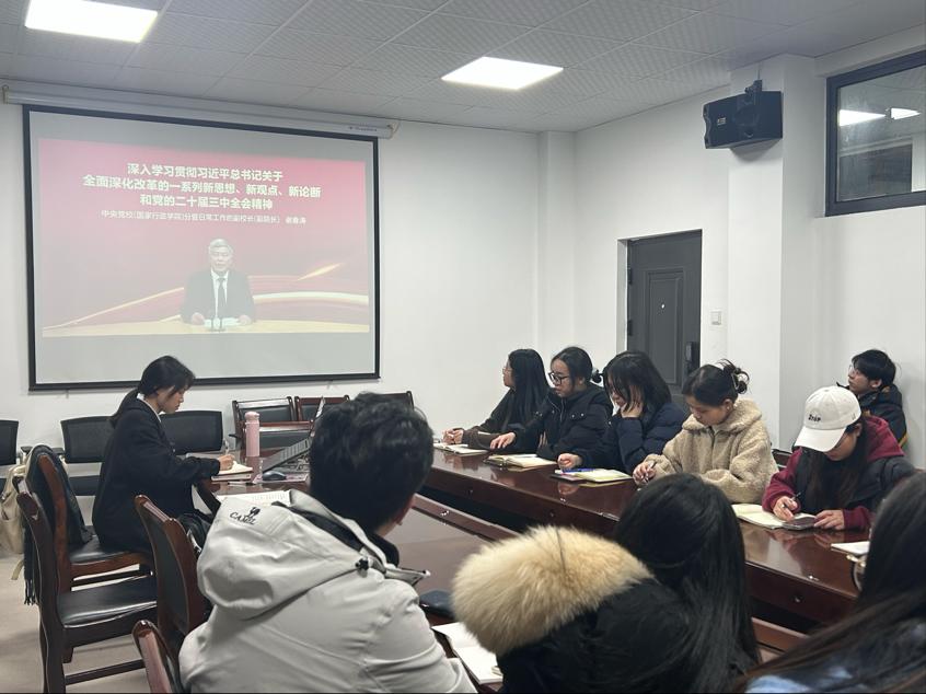 bevictor伟德国际1946本科生第一党支部于2024年11月28日在bevictor1946三楼会议室召开了深入学习贯彻习近平总书记关于全面深化改革的一系列新思想、新观点、新论断和党的二十届三中全会精神主题党日活动,活动由支部书记郭童主持,全体正式党员、预备党员参加此次活动。