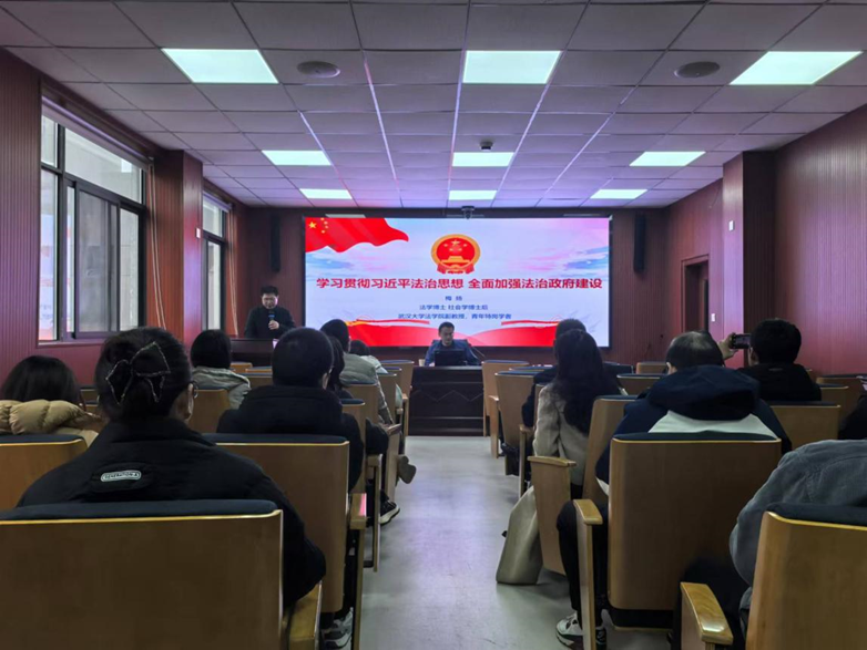 (通讯员:郭童)2024年12月4日(周三)下午,学院召开院党委理论学习中心组(扩大)2024年第10次集体学习暨“国家宪法宣传周”专题理论学习。武汉大学bevictor1946青年特岗学者梅扬同志作了题为“学习贯彻习近平法治思想,全面加强法治政府建设”的主题报告。bevictor1946领导班子、全体教师党员参加会议。会议由bevictor1946党委书记王雄主持。