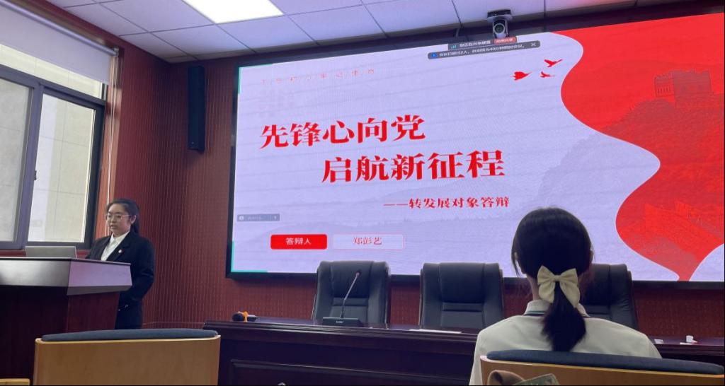 活动第一项,郑彭艺等入党积极分子介绍自己的入党动机、理论学习等方面,正式党员结合时事分别进行提问并根据回答进行评议打分。